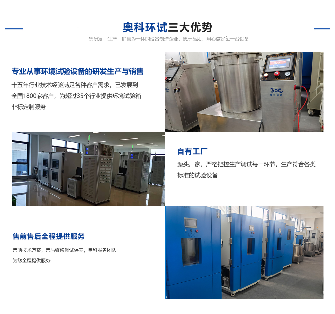 安徽奧科試驗設備有限公司隸屬于杭州奧科環境試驗設備有限公司直屬分公司,是一家從事各種試驗設備研發、生產與銷售一體的技術單位。總公司擁有強大的技術團隊及科學嚴謹的生產流程,鑄就了產品質量。公司本著“以質量求生存,以信譽求發展”的原則,為科研、軍事、航空、電子、汽車、石油、化工、醫療、通訊等各大院校和企事業單位提供符合GB、GJB、IEO、ISO、ASTM、MIL、DIN等標準的各類環境試驗設備,并可根據用戶的需求設計制造各類非標性設備。奧科奉行“進取求實嚴謹團結”的方針,不斷開拓創新,以技術為核心、視質量為生命、奉用戶為上帝,竭誠為您提供高性價比的自控產品及無微不至的售后服務。